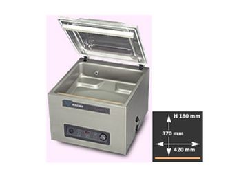 Производство – Голландия Корпус и камераВыполнены из нержавеющей стали. Вес упаковщика – 54кгГабаритные размеры упаковщика – 420 х 370 мм Размер камеры – 420х415х135 ммСистема запайки пакета Длина сварной планки – 420 мм. Планка снабжена одной запаечной струной шириной 3, 5 мм. Их закругленная форма позволяет запаивать пакеты испачканные жировым составом. Для увеличения производительности и при небольшой высоте упаковываемого продукта пакеты можно укладывать на сварочную планку внахлест, в два слоя.Система вакуумирования Насос "Busch" (Германия) – производительность 16 м3/час.Комплектность поставки, гарантийное и пост-гарантийное обслуживание Подробная инструкция на русском языке, сертификаты.В комплект поставки входят дополнительно расходные материалы: масло для насоса, тефлоновая лента, сварочная струна. Весь ассортимент расходных материалов и ЗИП у нас всегда есть в наличии.Гарантия на вакуумные упаковщики Henkelman – 18 месяцев. Наша фирма 6 лет занимается поставками в Россию упаковщиков Henkelman. В месяц объем продаж составляет 50 машин различного класса. Заводской брак сведен к минимуму, так как машины проходят тестировку и предпродажную подготовку в Голландии в течении 30 дней после сборки.Henkelman располагает самым большим модельным рядом включая в себя около 40 моделей. При увеличении мощностей Вашего производства и при желании в дальнейшем приобрести более мощную машину старая может идти в зачет по остаточной стоимости.