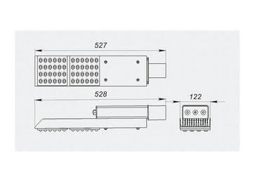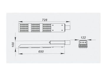 Назначение светильников: Освещение магистралей, улиц, дорог, пешеходных дорожек, тротуаров, придомовых территорий. Особенности и преимущества светильников: Светодиодные светильники с использованием оптики применяются там, где необходимо сконцентрировать пучок света в нужном направлении для того, чтобы уменьшить освещенность второстепенных поверхностей и увеличить освещенность основных поверхностей - путем перераспределения светового потока. Светодиодные светильники обеспечивают в 2,5 раза большую освещенность объекта, чем светильники без оптики одинаковой мощности. Использование оптики становиться наиболее актуальным при высоком расположении источника света (от 4 м и выше), так как при использовании светодиодов без вторичной оптики значительная часть светового потока рассеивается на большой площади, уменьшая тем самым КПД использования светодиодного светильника. Одним из применений таких светильников может служить освещение автомагистралей, где в большей степени требуется освещение дорожного покрытия. В соответствии с ГОСТ 17677 автомагистрали должны освещаться светильниками с кривой силы света «Широкой» и «Полуширокой».Данным требованиям соответствуют модульные линзы, используемые в светильниках. В светильниках используются светодиоды последних разработок таких известных фирм, как CREE (США) и Seoul Semiconductor (Корея), позволяющих получать более 130 Люмен с 1 Вт мощности светодиодов. Использование данных светодиодов позволяет получать на 30% больший уровень освещенности при той же потребляемой мощности в сравнении с обычными светодиодными светильниками. Основой конструкции является алюминиевый корпус-радиатор, который обеспечивает оптимальный температурный режим и высокую прочность светильника.