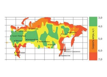 Рабочая скорость ветра – номинал 5,0 - 10 м/сек.