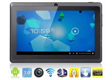 характеристики планшета: Вес: 267g ( 0.59lb. ) Размер: 18.00cm x 12.00cm x 0.95cm (7.09in x 4.73in x 0.37in) Операционная система:Android 4.0 Память 16GB Поддерживает карты памяти micro SD/TF card up to 32GB размер экрана 7-inch разрешение 800*480 pixels Wi-Fi поддерживает IEEE802.11b/g/n поддерживает внешний 3G USB Bluetooth нет камера внешняя-2million pixels камера фронтальная 0.3 million pixels функции мультимедиа Audio Player Support MP3, AAC, AMR, WMA, WAV, MIDI formats audio Video Player Support RMVB, WMV, ASF, MP4, 3GP, AVI, MKV, MPEG-2, MPEG-4 formats video, and support 1080P video playing Sound Recorder Support, built-in microphone for long time audio recording Image Browser Support JPG, BMP, PNG, GIF formats E-book Support PDF, TXT, DOC, PPT, EXCEL, etc Game Support батарейки хватает от 10 до 16 часов.
