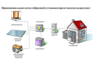 Действует по принципу генерирования электроэнергии от ВЭУ для Вашей внутренней электрической сети и её накопления в аккумуляторных батареях (АКБ). Инвертор преобразует постоянный ток от АКБ в переменное напряжение 220 Вольт для подключения Ваших приборов энергопотребления.