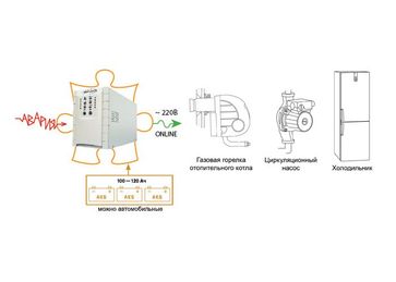 В летнее время ИБП может быть использован для питания бытовых холодильников.