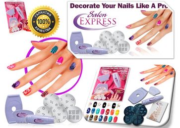 Если раньше, чтобы сделать необычный маникюр, нужно было идти в салон или обращаться к специалистам, то сегодня все манипуляции с ноготками можно делать дома и абсолютно без посторонней помощи!Теперь вы можете самостоятельно выполнить как черно-белый дизайн ногтей, так и стильный красочный - при этом каждый раз разный! Так просто и безопасно, что справится даже ребенок!С помощью Salon Express Вы получите профессиональный дизайн ногтей, не выходя из дома и за считанные минуты.Что в комплекте?Salon Express состоит из набора печатных форм, специального оборудования (подставка, скребок для удаления излишков лака, устройство для переноски трафарета на ногтевую поверхность) и инструкции по применению. В комплекте вы получите 5 трафаретов с 34 узорами, что даст вам возможность наносить большое количество узоров высочайшего качества.Как использовать Salon Express?В первую очередь необходимо подготовить ногти – на них наносится базовое покрытие. Может использоваться и однотонный лак. После этого на специальную подставку помещается шаблон с дизайном. Выбирают контрастный к цвету использованного покрытия лак. Его наносят на металлическую форму. Излишки лака удаляют скребком. Необходимо, чтобы лак был только в углублениях формы. После этого применяют устройство для переноса трафарета. У него имеется две рабочие поверхности, отличающиеся по размеру. Чтобы получить отпечаток рисунка, одна из поверхностей прижимается к форме