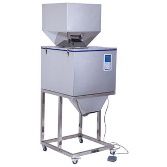 Весовой дозатор MAG-WA999 это оборудование идеально подходит для дозирования и последующей фасовки крупы и различных сыпучих пищевых и непищевых продуктов дозами от 10 гр до 999 грамм. Погрешность дозирования зависит от продукта (для порошка составляет ±0,2 грамма). Дозатор MAG-WA999 изготовлен из пищевой нержавеющей стали, смонтирован на каркасе с роликами со стопорами. Размер отверстия ссыпного бункера регулируется и составляет 7х4 см или 12х7 см. Загрузочный бункер квадратной формы, подача из него продуктов на вибролоток регулируется при помощи заслонки.