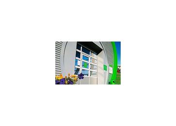 Секционные ворота с панорамными панелями обеспечивают обзорность внутреннего интерьера помещений, естественное освещение и являются идеальным решением для автосалонов, станций технического обслуживания, пожарных частей, автомоек и других промышленных объектов. Панорамная панель изготовлена из экструдированных алюминиевых профилей, в которые установлены акриловые светопрозрачные вставки. Помимо светопрозрачных материалов в панорамные панели можно устанавливать композитные сэндвич-панели, которые представляют собой два листа алюминия, заполненных полимерным материалом. Секционные ворота могут быть изготовлены полностью из панорамных панелей. Также в воротах панорамные панели можно комбинировать с одной или несколькими сэндвич-панелями. Для идеального сочетания панорамного остекления и сэндвич-панелей толщина рамки равна толщине панели (45 мм), а форма оголовков разработана таким образом, чтобы обеспечить надежную стыковку панелей между собой, сохраняя одно из важнейших требований безопасности – защиту от защемления пальцев. Панорамные ворота могут устанавливаться в проемы шириной 5 м и высотой 5,335 м. Многочисленные варианты конструкции панорамных ворот (10 видов) позволяют произвести монтаж в помещениях с любыми особенностями проема: низкой перемычкой, высокими потолками или наклонной крышей и т.д. Панорамные ворота «Алютех» можно окрасить в 10 стандартных цветов (без дополнительной надбавки к цене), либо в любой цвет по каталогу RAL.