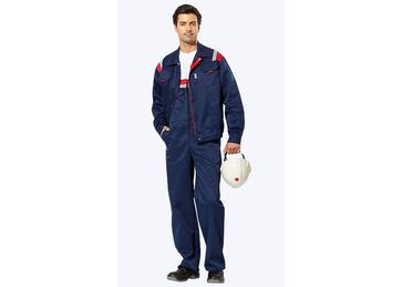 Артикул: 01659 Рекомендуется для использования городскими коммунальными службами, в сервисных центрах, строительстве, техническими службами предприятий. Состоит из куртки и полукомбинезона. Куртка прямого силуэта на притачном поясе, со скрытой центральной застежкой на молнию, отложным воротником. Оснащен нагрудными накладными карманами с клапанами, имеющими хлястики-"флажки" для удобного расстегивания. Нижние, глубокие с косым входом, подчеркнутым кантом. Световозвращающие полосы в композиции с контрастной тканью в области плеч, позволяют использовать данную модель в условиях плохой видимости. По талии полукомбинезона и в бретелях эластичная лента.Цвет: темно-синий с красной отделкойТкань: смесовая(50% полиэфир, 50% хлопок) пл.215г/м2, ВОРазмер: с 88-92 по 120-124Рост: 170-176, 182-188Защитные свойства: Ми З ГОСТ 27575-87