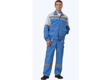 Артикул: 57274 Удобная и функциональная модель для инженерно-технического состава предприятий и рабочих различных специальностей- центральная застежка-молния на полукомбинезоне- световозвращающие полосы на кокетках, рукавах и по низу брючин- световозвращающий кант на полочках и кокетках п/к- складки на спинке куртки для свободы движений- резинка по поясу куртки и полукомбинезона- вставка из трикотажной сетки на спинке полукомбинезона для дополнительного воздухообмена- накладные карманы различной формы с клапанами на липучках- съемные навесные карманы для инструментов с патронташем из резинки- усилительные накладки на локтях и коленяхЦвет: светло-васильковый со светло-серой отделкойТкань: смесовая "Томбой" (Carrington, Англия), пл.245 г/м2Размеры: с 88-92 по 120-124Рост: 170-176, 182-188Защитные свойства: Ми З ГОСТ 27575-87