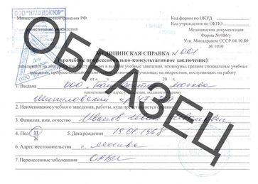 Медсправка на работу 086 (справка для трудоустройства на работу) в Самаре