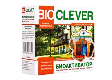 У владельцев септиков, дачных и уличных туалетов, накопительных колодцев и шамбо регулярно остро стоит вопрос каким препаратом почистить выгребную систему. Ассенизаторские услуги стоят недёшево. Как очистить выгребную яму и септик и устранить зловоние в уличном и дачном туалете и сливных сантехнических системах? Советуем купить у нас био препарат Bioclever. Он быстро и эффективно решит проблему очищения накоплений туалетов и септиков от содержимого и удаления неприятного запаха во всех видах выгребных ям. В составе средства биоклевер специально выращенные биобактерии. Они полностью перерабатывают фекалии, биологическое содержимое и отходы жизнедеятельности человека в септиках и туалетах в обычную воду и устраняют неприятный запах в них. Пакетик bioclever разведите в ведре тёплой не кипячёной воды, дайте постоять минут 10. Далее выливаете био активатор в резервуар, который собираетесь очистить. Очищается от заиливания на дне и стенках ямы, жировые налёты и отложения. Через 5 - 7 дней с начала очистки исчезает неприятный зловонный запах, а вода через очищенное от фекалий и илистых отложений дно уходит в землю. Полная подробная инструкция по использованию и применению препарата имеется на коробке. На очистку 1 куба ямы расходуется 1 п. биоактиватора. При сливе в септик мыльных и других хим.компонентов дозировка увеличивается. В упаковке 3 пакета на 3 кубометра очистки. У средства bioclever всегда отличные отзывы покупателей! Предлагаем товар непосредственно от производителя. Опасайтесь дешёвых некачественных подделок. Цена 550 рублей за упаковку.