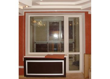 Профиль КВЕ (Германия), фурнитура ROTO NT (Германия), однокамерный стеклопакет, окно-глухое, дверь поворотно-откидная, подоконник, микропроветривание, балконная защелка, доставка, монтаж.