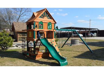 Для удобства и безопасности детей устанавливайте площадку на ровную поверхность, чтобы с каждой стороны было по 1,8 метра свободного пространства.