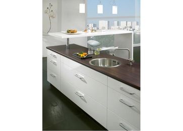 столешницы с вклеенными мойками из нержавеющей стали;- интегрированные столешницы с барными стойками или подоконниками- столешницы с умывальниками для ванных комнат.