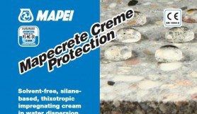 Mapecrete Creme Protection — это тиксотропный, без содержания растворителей, на основе силана, пропиточный состав в водной дисперсии с кремовой консистенцией. Благодаря определенным характеристикам с высоким водоотталкиванием, Mapecrete Creme Protection может использоваться для защиты поверхностей против проникновения хлоридов, одним из основных причин повреждения арматурной стали в бетоне, в том числе в морской среде. Высокая капиллярная проникающая способность и высокая концентрация содержания силана, позволяет продукту формировать прочную химическую связь с обработанным бетоном, что гарантирует полную, долговечную гидрофобную обработку. Продукт имеет кремовую консистенцию и низкий уровень испарения во время обработки и нанесения, что означает, что уровень проникновения состава в основание может оцениваться непосредственно после нанесения и уровень требуемой защиты может регулироваться в зависимости от пористости основания. Поверхности, обработанные Mapecrete Creme Protection становятся водоотталкивающими, в то время как их паропроницаемость сохраняется неизменной. Области применения Мапекрет Крем Протекшн