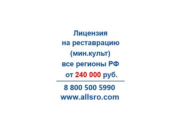 Оформляем лицензию Российского Министерства культуры на реставрацию объектов культурного наследия (скомплектуем пакет документов «под ключ» и представим Ваши интересы в инстанциях). Срок действия лицензии неограничен. Период оформления составит 45 -60 рабочих днейдля Саратова.