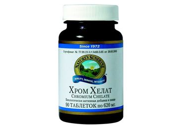 Chromium Chelate --Поддерживает нормальный уровень сахара в крови --Повышает мышечный тонус, работоспособность и выносливость --Нормализует обмен веществ, снижает уровень холестерина, регулирует уровень сахара при инсулинорезистентных состояниях --Снижает аппетит Уровень содержания сахара в крови влияет на общее самочувствие, настроение, а также на вес и внешний облик человека. В настоящее время доказано, что для нормальной работы гормона инсулина, то есть для обеспечения нормального уровня сахара в крови, необходимо присутствие хрома.Chromium Chelate повышает активность инсулина, укрепляет мышцы, а также способствует нормализации обмена белков, жиров и углеводов.В состав биологически активной добавки хром входит в хелатной (соединение хрома с различными аминокислотами) форме, что способствует его лучшему усвоению в организме.Доказано, что хром увеличивает резервные возможности организма запасать гликоген. Это, во-первых, способствует увеличению мышечной массы и силы сокращения мышц, а, во-вторых, косвенно влияет на снижение жировых запасов, так как большее количество углеводов может переходить в гликоген, а не жир. Хром является центральным атомом в молекуле гормоноподобного вещества - фактор усвоения глюкозы (GTF - glucose tolerance factor) работает в содружестве с инсулином, обеспечивая транспорт глюкозы через клеточные мембраны.Также хром снижает содержание в крови нежелательного холестерина (ЛНП - холестерин) и уровень триглицеридов. Повышенное употребление сахаров и углеводной пищи современным человеком вымывает хром из организма, к тому же резкое сокращение этого минерала в почвах привело к хромдефицитному состоянию практически всего населения земного шара.Известно, что 40% населения США страдают так называемым гипогликемическ