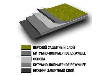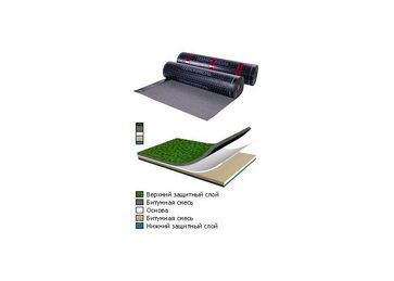 С мелкозернистой посыпкой или полимерной пленкой с лицевой стороны и полимерной пленкой с нижней стороны полотна или мелкозернистой посылкой с обеих сторон полотна; применяется для устройства нижних слоев кровельного ковра и гидроизоляции строительных конструкций.
