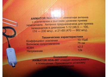 - Комнатная всеволновая ТВ-АНТЕННА ANIMATOR HDA-007 по выгодной цене 850 р. руб.;