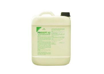 PROSEPT 42 - антисептик для консервации круглого неокоренного лесаконцентрат 1:19PROSEPT 42 - предназначен для защиты круглых лесоматериалов различных пород в штабеле. Применяется в весенне-летний период, для предотвращения снижения сортности древесины от действия биологических агентов. Предотвращает и останавливает заселение штабеля короедом, поражение деревоокрашивающими (синева, мраморная гниль) и дереворазрушающими грибами, снижает усушечное растрескивание торцов в летний период. Применяется в качестве транспортного антисептика и защитной пропитки для обработки торцов крупномерных пиломатериалов.МЕХАНИЗМ ДЕЙСТВИЯ:PROSEPT 42 - представляет собой водорастворимый концентрат биологически активных веществ на водной основе с широким спектром фунгицидной и инсектицидной активности. Препарат эффективен против насекомых древоточцев и их личинок, действия плесневых, дереворазрушающих и деревоокрашивающих грибов.PROSEPT 42 - при обработке торцов круглого леса, либо крупномерных пиломатериалов, фиксируется в древесине на 2-3мм., образуя пленку, которая снижает паропроницаемость и эффективно регулирует интенсивность выхода влаги. За счет этого механизма уменьшается, до 75%, степень (глубина) усушечного растрескивания торцов крупномерных лесо- пиломатериалов хвойных и лиственных пород, при атмосферной сушке, транспортировке и хранении в летний период. Срок действия этого механизма 3-5 месяцев. Срок защиты от биологических агентов до 2-ух лет.Антисептирование не приводит к изменению физических свойств древесины. Не препятствует дальнейшей обработке.ПРИМЕНЕНИЕ: (по возможности получите консультацию у поставщика)Для обработки древесины развести концентрат любой доступной водой в соотношении 1:19.Возможны два способа обработки древесины:1. Обильное нанесение рабочего раствора на поверхность распылением или разбрызгиванием. Для этого подходят любые разбрызгивающие устройства, например: ранцевы