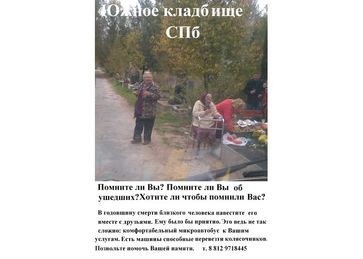 В годовщину смерти близкого человека навестите его вместе с друзьями. Ему было бы приятно. Это ведь не так сложно: комфортабельный микроавтобус к Вашим услугам. Есть машины способные перевезти колясочников. При необходимости поможем поднять/спустить колясочника непосредственно в/из квартиру/ры.Позвольте помочь Вашей памяти. т. 8 812 9718445