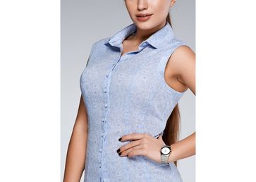 Одежда марки DDShop предназначена для девушек с большой грудью. В DDShop нестандартная размерная линейка: размер одежды (в т.ч. платья, блузки, жакеты, пальто) - это размер груди по бюстгальтеру. Например, если в размере указано 75E/75F, значит данная вещь садится на девушку с размером бюстгальтера 75E и 75F. При этом данные размеры соответствуют следующим параметрам талии и бёдер:70C, 70D, 70E, 70F - обхват талии 65см, обхват бедер 90 см75C, 75D, 75E, 75F - обхват талии 70см, обхват бедер 95 см80C, 80D, 80E, 80F - обхват талии 75см, обхват бедер 100 см85C, 85D, 85E, 85F - обхват талии 80см, обхват бедер 105 смВоздушная и легкая! Блузка нежного оттенка с цветочным притом. Без рукавов, с застежкой на пуговицы. Придаст вашему образу мягкость и романтичность.