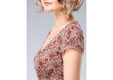 Одежда марки DDShop предназначена для девушек с большой грудью. В DDShop нестандартная размерная линейка: размер одежды (в т.ч. платья, блузки, жакеты, пальто) - это размер груди по бюстгальтеру. Например, если в размере указано 75E/75F, значит данная вещь садится на девушку с размером бюстгальтера 75E и 75F. При этом данные размеры соответствуют следующим параметрам талии и бёдер:70C, 70D, 70E, 70F - обхват талии 65см, обхват бедер 90 см75C, 75D, 75E, 75F - обхват талии 70см, обхват бедер 95 см80C, 80D, 80E, 80F - обхват талии 75см, обхват бедер 100 см85C, 85D, 85E, 85F - обхват талии 80см, обхват бедер 105 смТуника с коротким рукавом и округлым вырезом из легкой цветочной ткани. Рукава и линия декольте отделаны изящным молочным кружевом, очаровательные маленькие пуговки на лифе. Туника приталена за счет нитки-резинки под грудью. Жатая ткань не требует глажки!