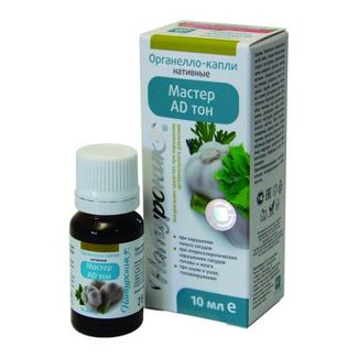 Натуроник® Мастер АD тон органелло-капли – натуральный трансбиогенный комплекс полиактивного действия на основе концентратов активных структур растений и природных компонентов, направленный на нормализацию вазомоторных и гормональных механизмов регуляции артериального давления, функций и состояния органов сердечно-сосудистой, нервной, эндокринной, иммунной систем, обеспечивающий оптимизацию тонуса сосудов и капилляров, реологические свойства крови при стойком повышении артериального давления и сопутствующих изменениях.