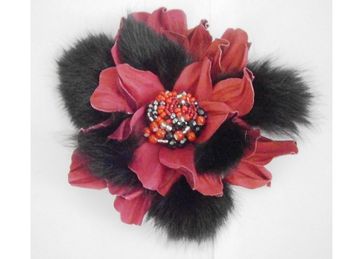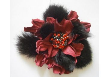 Цветок из натуральной кожи, мех- кролик, чешский бисер и бусины.Можно выполнить в любом цвете и с любой застежкой (брошь, заколка-автомат, заколка-зажим или завязкой). Размер 10 см