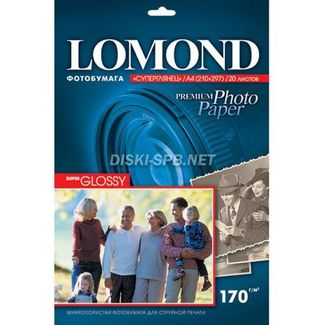 - Фотобумага A4, 170г м2, суперглянцевая односторонняя 20л, LOMOND по выгодной цене 441 р. руб.;