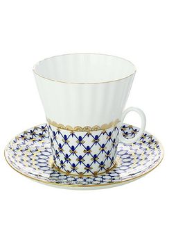- Кофейная чашка с блюдцем форма "Одуванчик", рисунок "Кобальтовая сетка", Императорский фарфоровый завод по выгодной цене 2 880 р. руб.;