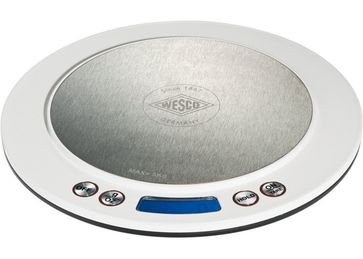 Материал: нержавеющая сталь. Покрытие: порошковое покрытие. Максимальный вес - 5 кг., LED-дисплей, 4 сенсорные кнопки. Диаметр: 20 см Высота: 1,5 см Вес: 0,8 кг. Производство - Германия.