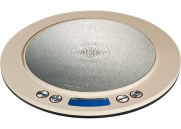 Материал: нержавеющая сталь. Покрытие: порошковое покрытие. Максимальный вес - 5 кг., LED-дисплей, 4 сенсорные кнопки. Диаметр: 20 см, Высота: 1,5 см, Вес: 0,8 кг. Производство - Германия.