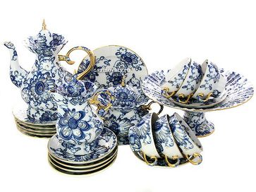 Сервиз чайный из 22 предмета: 6 чайных пар, чайник заварочный, сахарница, сливочник, 6 десертных тарелок и ваза для фруктов. Наличные, VISA/Mastercard, б/н расчет Страна производства: Россия
