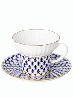 Сервиз чайный форма "Волна", рисунок "Кобальтовая сетка" 6 20, Императорский фарфоровый завод