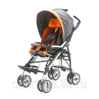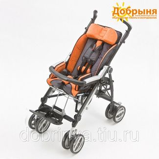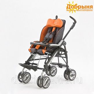 Легкая и прочная, прогулочная коляска-трость с доступной системой складывания и широким набором опций для комфортного и физиологически правильного размещения детей с ДЦП. Кресло-коляска снабжено специальной, регулируемой подкладкой, которая позволяет разместить мягкие подушечки и коррекционные пелоты именно в там, где малышу требуется опора и фиксация. Имеет современный, социально-ориентированный дизайн. Существует два цветовых решения кресла: оранжево-серый и чёрно-голубой. В коляске предусмотрена регулировка передних колес для снижения вибрации, система независимых тормозов и регулируемые по высоте ручки для сопровождающего.