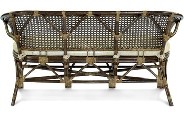 Диван из ротанга с ажурным плетением из кофейного комплекта Пеланги. Настоящая классика плетеной мебели из ротанга. Диван не разборный. Диван укомплектован подушкой из плотной ткани рогожка. Чехол на подушке съемный. Сиденье выполнено сплошным плетением ротанговой коры, что позволяет использовать диван без подушки. None Страна производства: Индонезия Есть доставка.