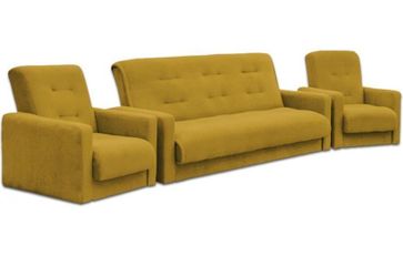 Комплет диван Милан и два кресла — современная комфортабельная мягкая мебель для гостиной. Модель легко раскладывается для сна, образуя просторное спальное место 190 х 120 см. Механизм трансформации: книжка. Каркас: массив сосны, ящик для белья из фанеры. Ткань: текстиль. Возможны 6 цветовых вариантов обивки. Цена указана для дивана со спальным местом 1200х1900 мм. Стоимость дивана со спальным местом 1400х1900 уточняйте у консультантов магазина. None Есть доставка.