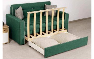 декор: декоративный контрастный кант по торцу спинки, торцу подлокотника, по верхнему срезу царги. Утяжки с пуговицами на спинке дивана. Две декоративные подушки в контрастной ткани.