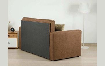 декор: декоративный контрастный кант по торцу спинки, торцу подлокотника, по верхнему срезу царги. Утяжки с пуговицами на спинке дивана. Две декоративные подушки в контрастной ткани.