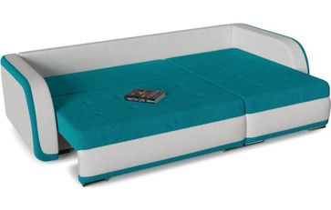 Практичным решением для оптимизации пространства является механизм трансформации еврокнижка, ведь он совмещает в себе удобство конструкции и простоту ее эксплуатации. Благородный Бирюзовый велюр+экокожа надолго сохранит представительный вид и будет радовать вас своим качеством по-настоящему много лет. Название цвета по фото и комплектация (размер): Обивка основная: Велюр azur 12, компаньон Экокожа Белый None Есть доставка.