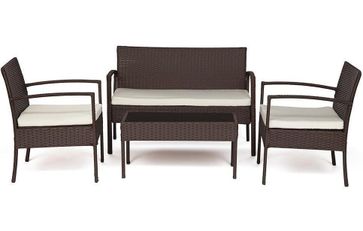 Материал: каркас - металл, спинка и сиденье - полиротанг, столешница - стекло, мягкие элементы - ткань полиэстер с пропиткой от дождя. Цвет: металл, полиротанг - коричневый, ткань - бежевый, DB-02. Размеры: диван - 106x60x71 см, кресло - 59x60x71, столик - 75x41x38 Страна-производитель: Китай None Страна производства: КИТАЙ Есть доставка.