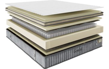 ТОППЕР: Пенополиуретан стандартный, высота 70 мм. ЧЕХОЛ: Ткань – стеганный премиальный Турецкий трикотаж. Бурлет – стеганный велюр, синтетическое нетканое волокно (холлофайбер) спандбонд, тесьма окантовочная матрасная. Декоративные ручки – 4 шт. НАПОЛНЕНИЕ: Верхний слой — интегральный пенополиуретан повышенной прочности LubiDom SKIN FOAM HARD, 30 мм. Независимый пружинный блок LubiDom SPRING STRONG проволока 1,8 мм 6 витков с добавлением титана. 289 пружин на 1 м2, высота блока 140 мм. Защитный слой - войлок. Нижний слой – интегральный пенополиуретан повышенной прочности LubiDom SKIN FOAM HARD, 30 мм. Усиления периметра - интегральный пенополиуретан повышенной прочности LuboDom SKIN FOAM HARD, высота 140 мм.