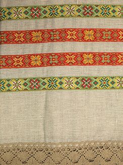 - Дорожка с жаккардовой тесьмой и кружевом, рушник для каравая с кружевом в каталоге Дома из бруса в Санкт-Петербурге;