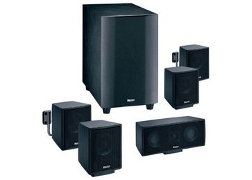 Комплект акустики для домашнего кинотеатра 5.1, состоящий из 4-х полочных акустических систем (2-полосные, 50/100 Вт), акустической системы центрального канала (2-полосная, 60/120 Вт) и активного сабвуфера (40/100 Вт). в комплекте кронштейны и настольные подставки для полочной акустики, цвет отделки корпуса - черный. None