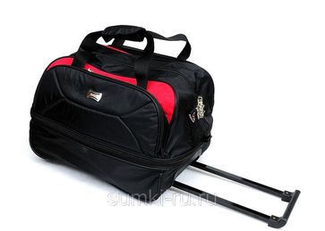 Сумка дорожная на колесах на 64 литра. Купить сумку у нас легко. Доставка в регионы почтой, по СПб курьером.Удобная дорожная сумка на колесах. Колёса на подшипниках и утоплены в корпус Сумка закрывается на молнию с двумя молниеводителями Сумка имеет одно большое отделение. С боковых сторон сумки по одному карману с двумя молниеводителями. Выдвижная ручка Ручки сумки с перехватом Плечевой ремень с удобным наплечником Пластиковая ручка в нижней части сумки позволяет удобно брать сумку. усиленная защита дна предохраняет от вытирания В нижней части 2 ножки. Кодовый замок Основной цвет сумки черно - красный Объём 64 литра Размеры: Длина 48 см. Высота 35 см (+8 см увеличение объема). Ширина 34 см. предоплата Возможен самовывоз. Есть доставка.