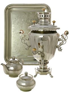 - Набор с угольным самоваром 5 литров никелированный "конус", "Серебряная фантазия", арт. 220735 по выгодной цене 32 900 р. руб.;