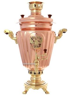 - Угольный самовар 5 литров латунь-медь "конус" граненый с накладным Гербом РФ, арт. 220526 по выгодной цене 29 900 р. руб.;