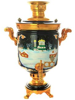 - Угольный самовар 7 литров с художественной росписью "Зимняя деревня", арт. 210500 по выгодной цене 19 900 р. руб.;