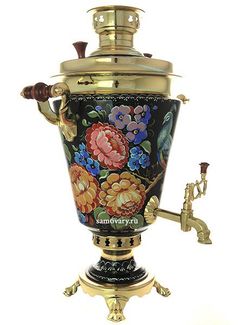 Тульский латунный самовар с художественной росписью. Труба для отвода дыма в комплекте. Наличные, VISA/Mastercard, б/н расчет Страна производства: Россия