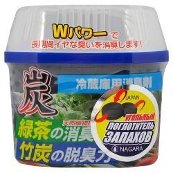 ---Описaние-Nagara Aqua Liquid «Древесный уголь» - экологически чистый и безопасный освежитель, состоящий исключительно из натуральных компонентов, не влияющих на качество и вкус продуктов, а также полностью поглощающих все нежелательные посторонние запахи в холодильнике. Объем составляет 180 грамм.-Общая информация--Производитель-Nagara-Тип-Поглотитель запаха для холодильника-Характеристики--Объем / Вес (мл/грамм)-180-Прочие характеристики-ПРИМЕНЕНИЕ: снимите пленки и установите в устойчивое местоСостав: вода, абсорбирующие полимеры 80%, дезодорирующие вещества зеленого чая 1%, бамбуковый уголь, isothiazolone.-Дополнительная информация--Особенности-Имеет универсальный дизайн, подходящий для любой туалетной комнатыБезопасен в применении-Упаковка--Размер упаковки (ВхШхД), см-6.5 x 8.6 x 9 см, вес 0.18 кг-Информация о производителе--Производитель-Nagara Chemical-Страна производства-Япония- None