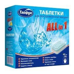 - Таблетки для посудомоечных машин Тайфун All in 1 , 60 шт по выгодной цене 645 р. руб.;